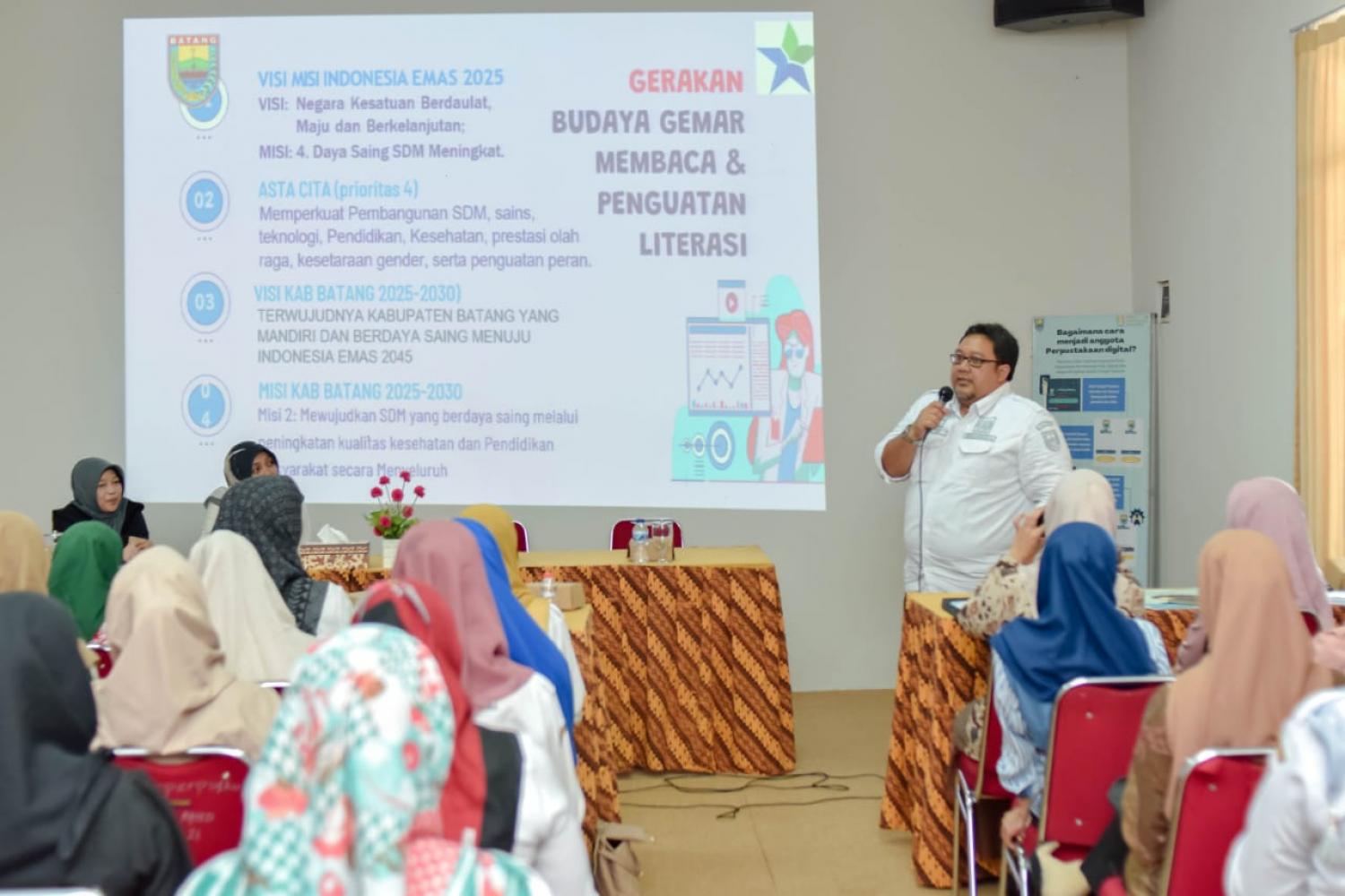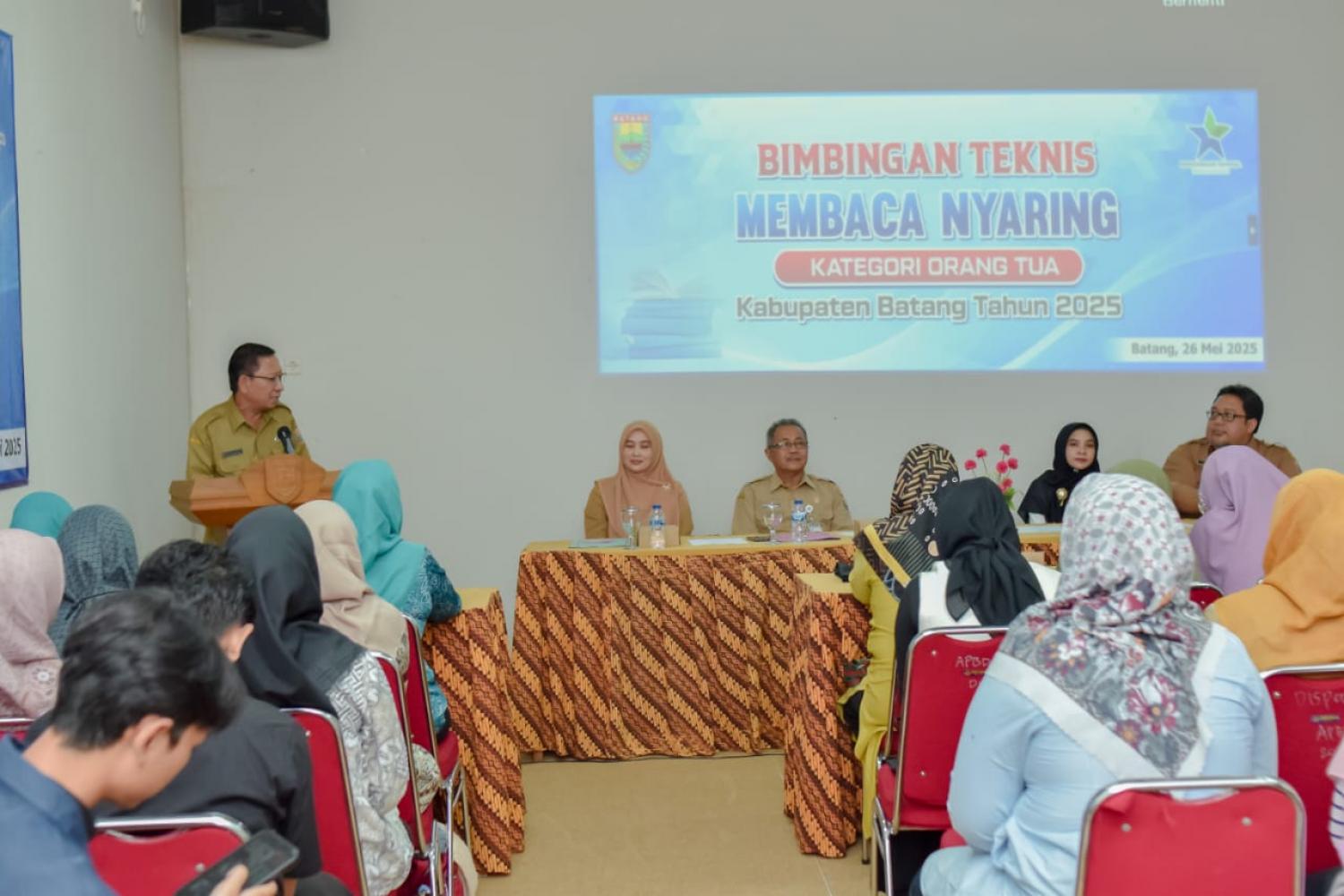 Dinas Perpustakaan dan Kearsipan Kabupaten Batang menyelenggarakan kegiatan "Bimbingan Membaca Nyaring" untuk Kategori Orang Tua, Guru, Pustakawan, dan Pegiat Literasi