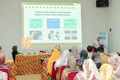 Peserta kegiatan ini berasal dari Guru, Orang Tua, Pustakawan, dan Pegiat Literasi yang berjumlah 150 orang