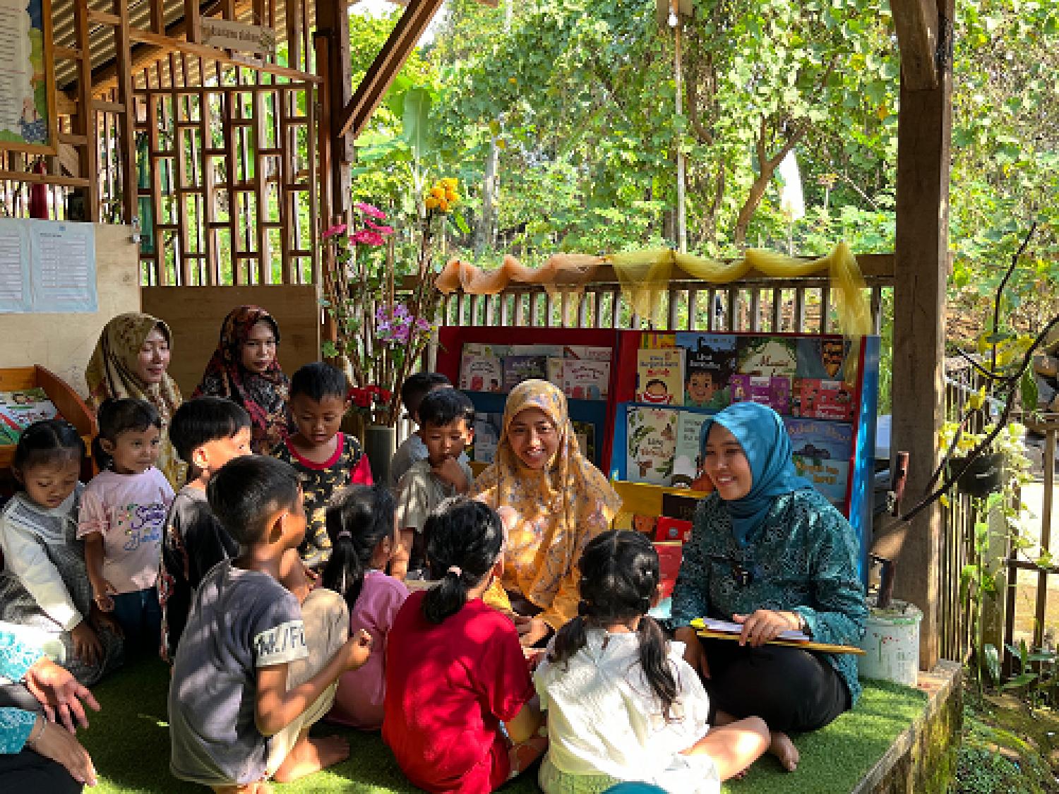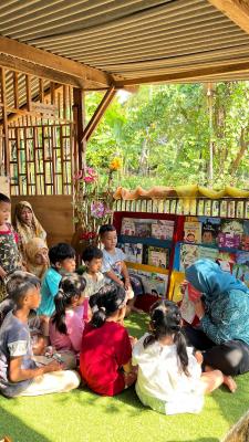 Selain itu, Bunda Khotim juga setiap minggu berkeliling rumah untuk membacakan buku cerita
